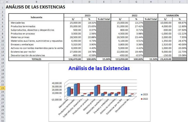Esta plantilla puede servirles para hacer un análisis de las existencias, realizar una presentación gráfica, analizar ratios e indicadores.