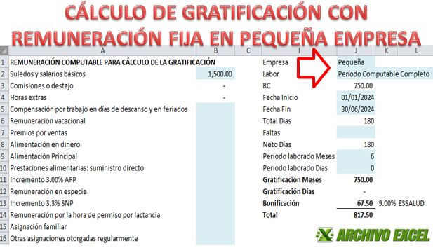 En este caso se muestra el cálculo de la gratificación de colaborador con remuneración fija y que se ubica en una pequeña empresa.