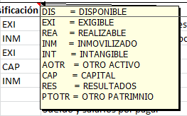 La presente plantilla permite identificar y clasificar las partidas que conforman la ecuación contable.