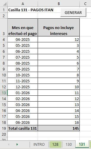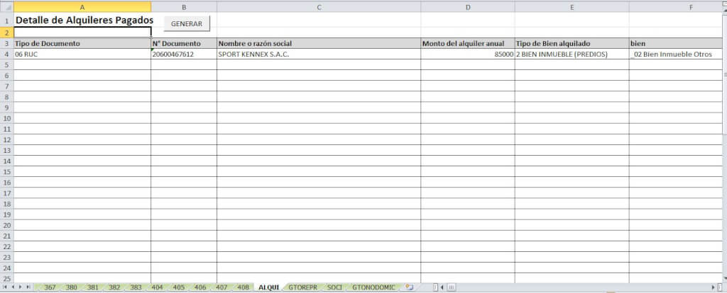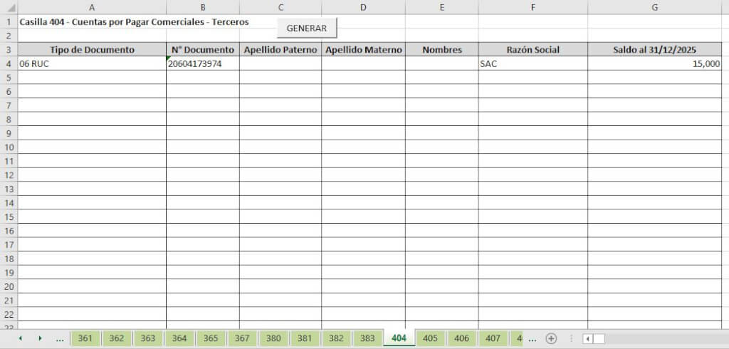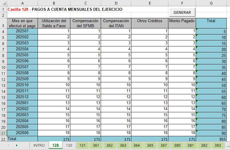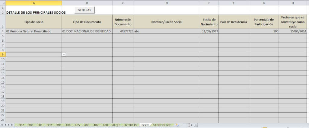 Luego ingresamos los datos en las siguientes hojas, dependiendo el número de casilla a utilizar.