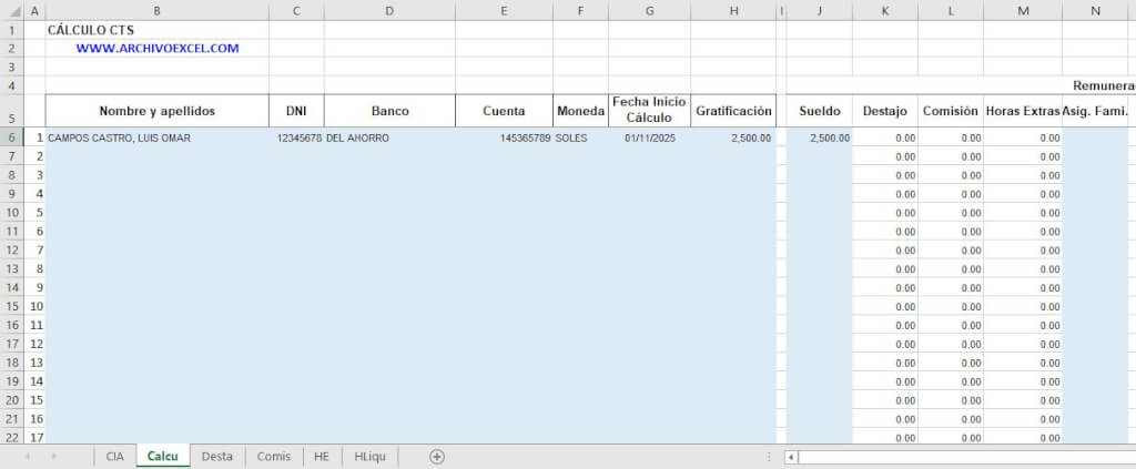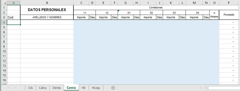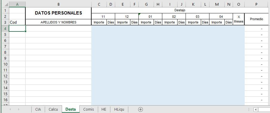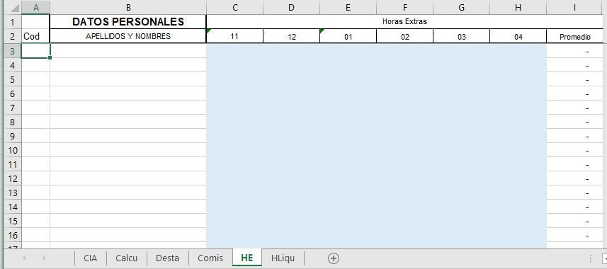 Hoja de Cálculo e ingreso de datos del colaborador