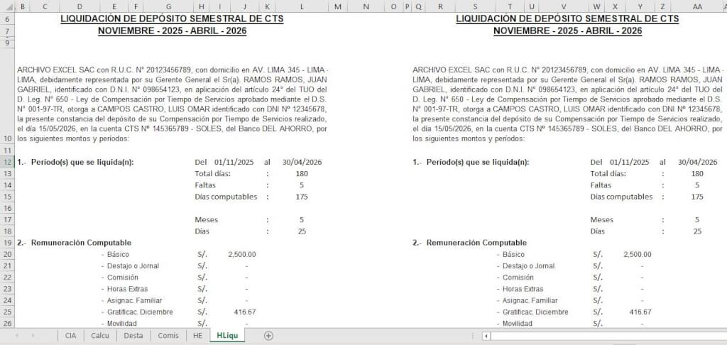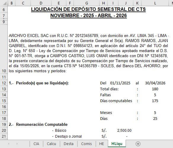 Estimados amigos, a continuación mostramos algunos ejemplos de cálculo de la CTS correspondiente al semestre Noviembre 2025 – Abril 2026.
