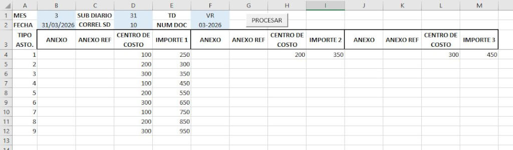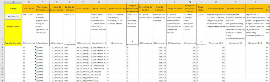 2.- General la plantilla de importación en Excel con el asiento a importar al CONCAR.